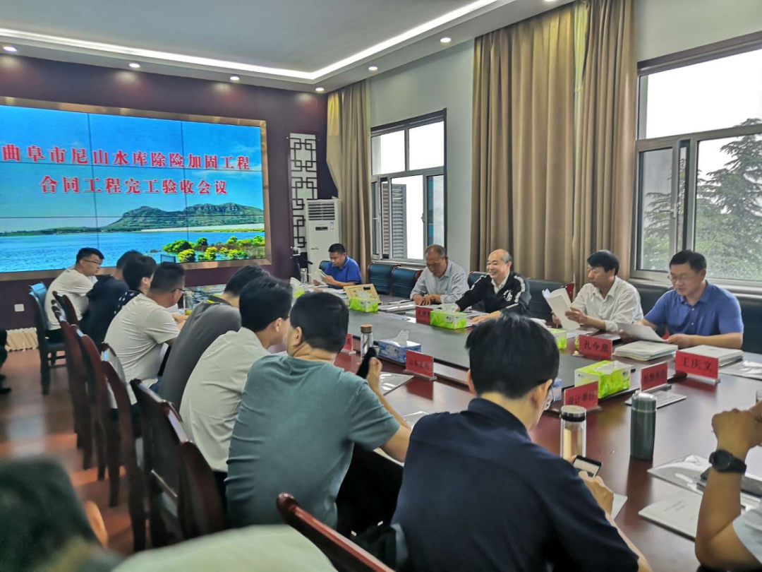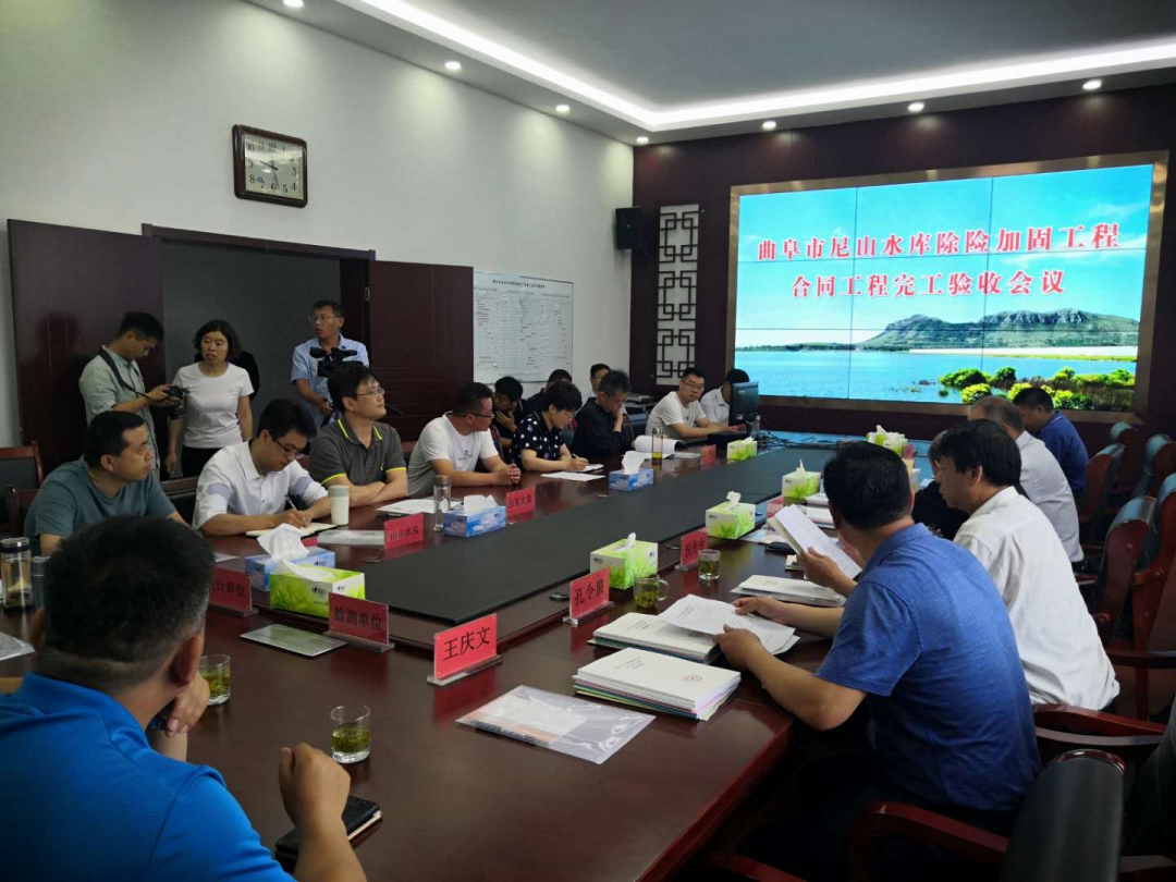 2020年5月30日上午,曲阜市尼山水库管理局主持召开了曲阜市尼山水库除险加固工程合同工程完工验收会议。济宁市城乡水务局、曲阜市尼山水库管理局、山东省水利勘测设计院、济宁市水利工程建设监理中心有限公司、山东省水利工程试验中心、山东水总有限公司等单位的代表参加了会议。