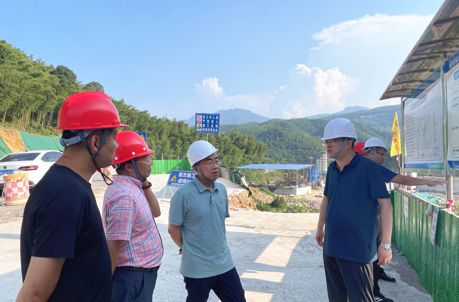 近日,公司党委委员、副总经理袁英杰一行到二局有限公司四川省宜宾市长宁县泽鸿水库工程、蓬安县五星花园片区改造项目开展检查指导工作,二局有限公司总经理王传波等人陪同。