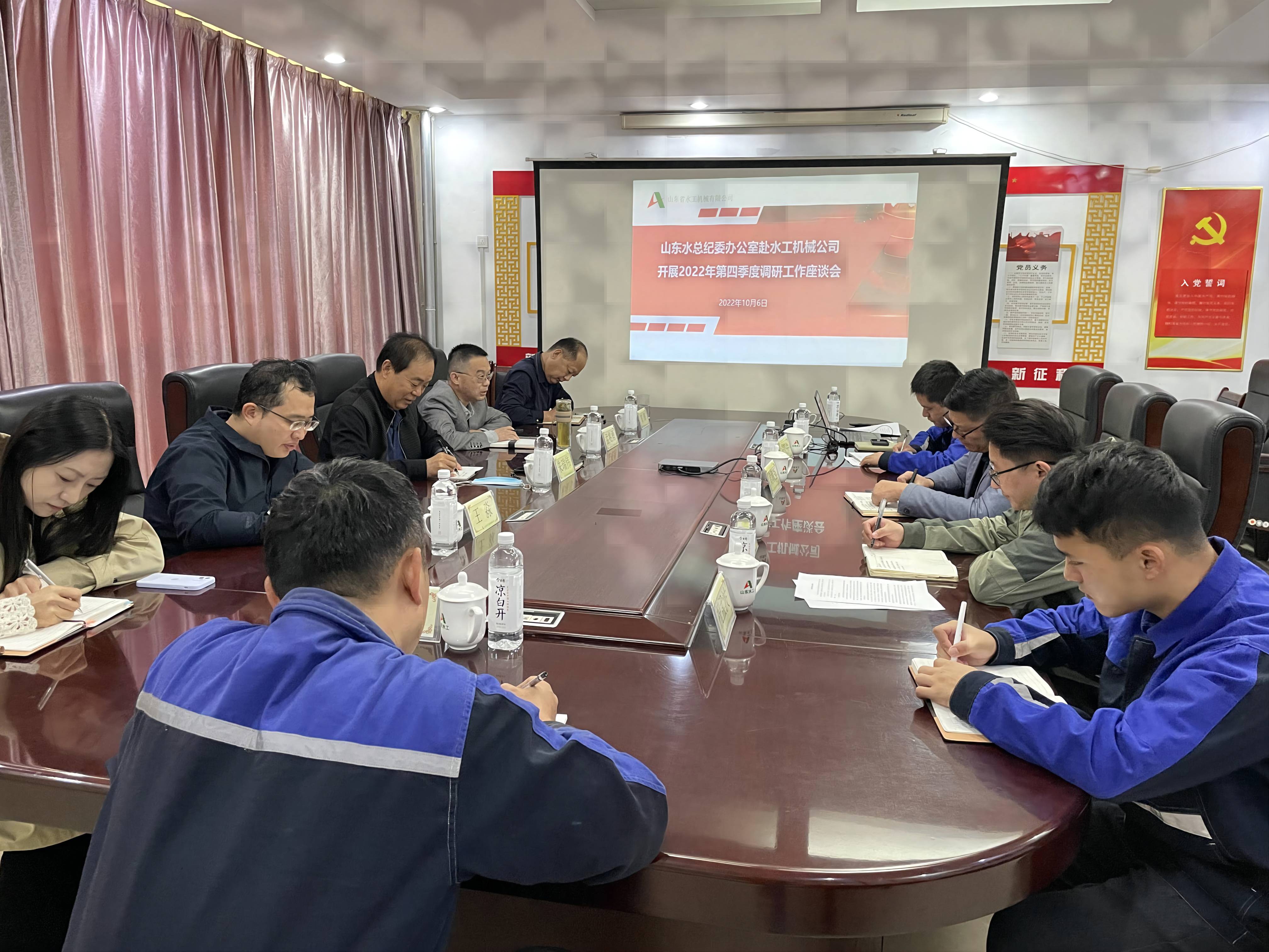10月5日,调研组首先在水工机械公司三楼召开座谈会,听取水工机械公司机料采购、废料处理、成本控制等情况汇报,以及公司在各项工作中遇到的难题及下一步工作措施,对有关问题给予现场指导。调研组指出,公司目前各项任务还十分艰巨,面对错综复杂的形势和艰巨繁重任务,要深入贯彻上级党委的总体要求,坚决落实集团公司的各项决策部署,动员全体干部职工,积极应对安全环保、生产经营、产品质量“三重”大战大考,坚定信心、攻坚克难、苦干实干。随后,调研组一行实地查看生产车间,了解项目进展,认真检查现场安全生产落实情况,听取职工诉求和意见建议。