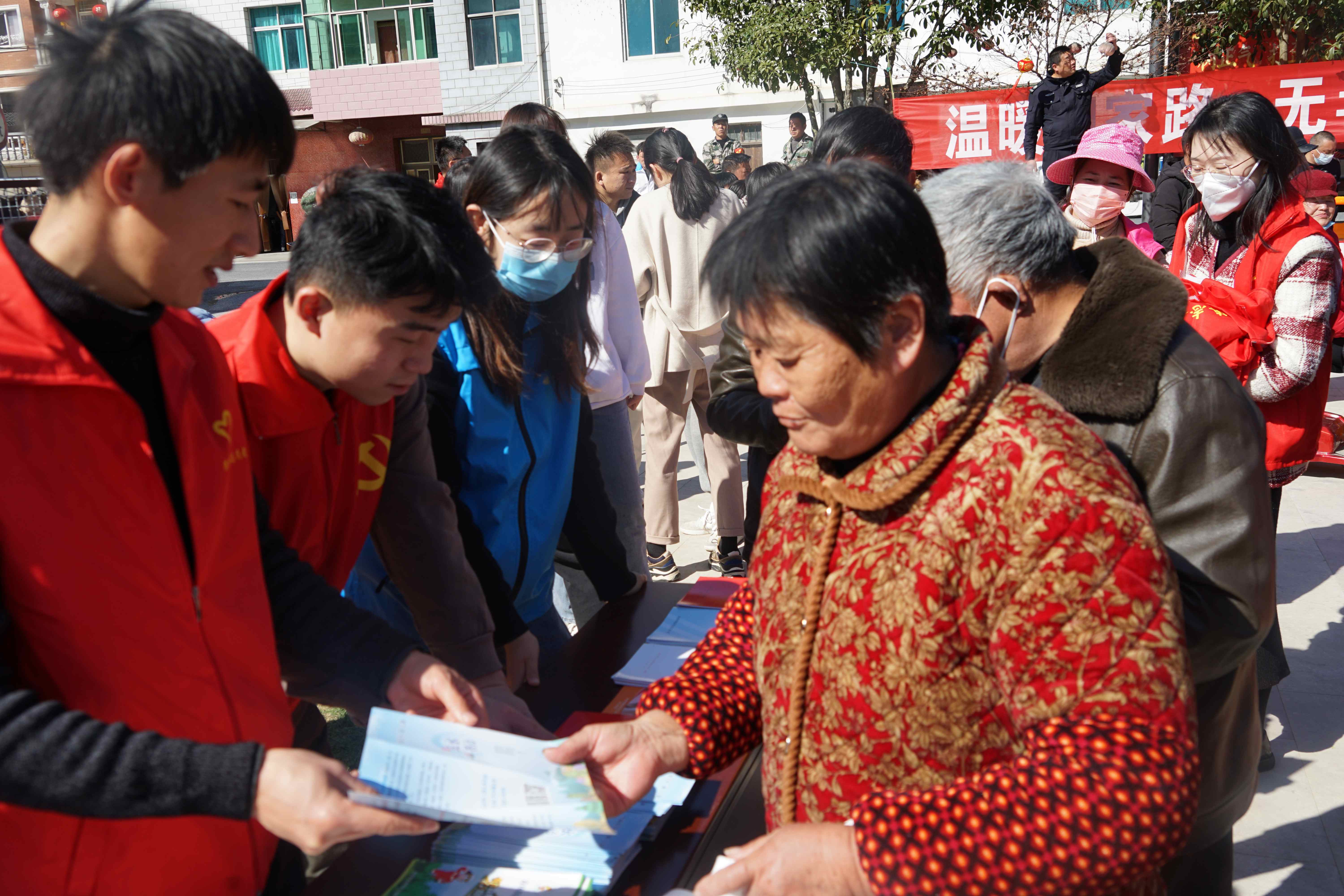 活动现场,舞台上戏曲、音乐表演与猜灯谜活动精彩纷呈。舞台下,清凉峰镇政府工作人员、临时党支部党员和林竹村党群服务中心成员组成志愿者服务队,为大家普及禁毒知识和发放森林防火手册,广场上洋溢着一片欢声笑语。活动结束后,志愿者们为林竹村百岁老人送去热气腾腾的煮汤圆。